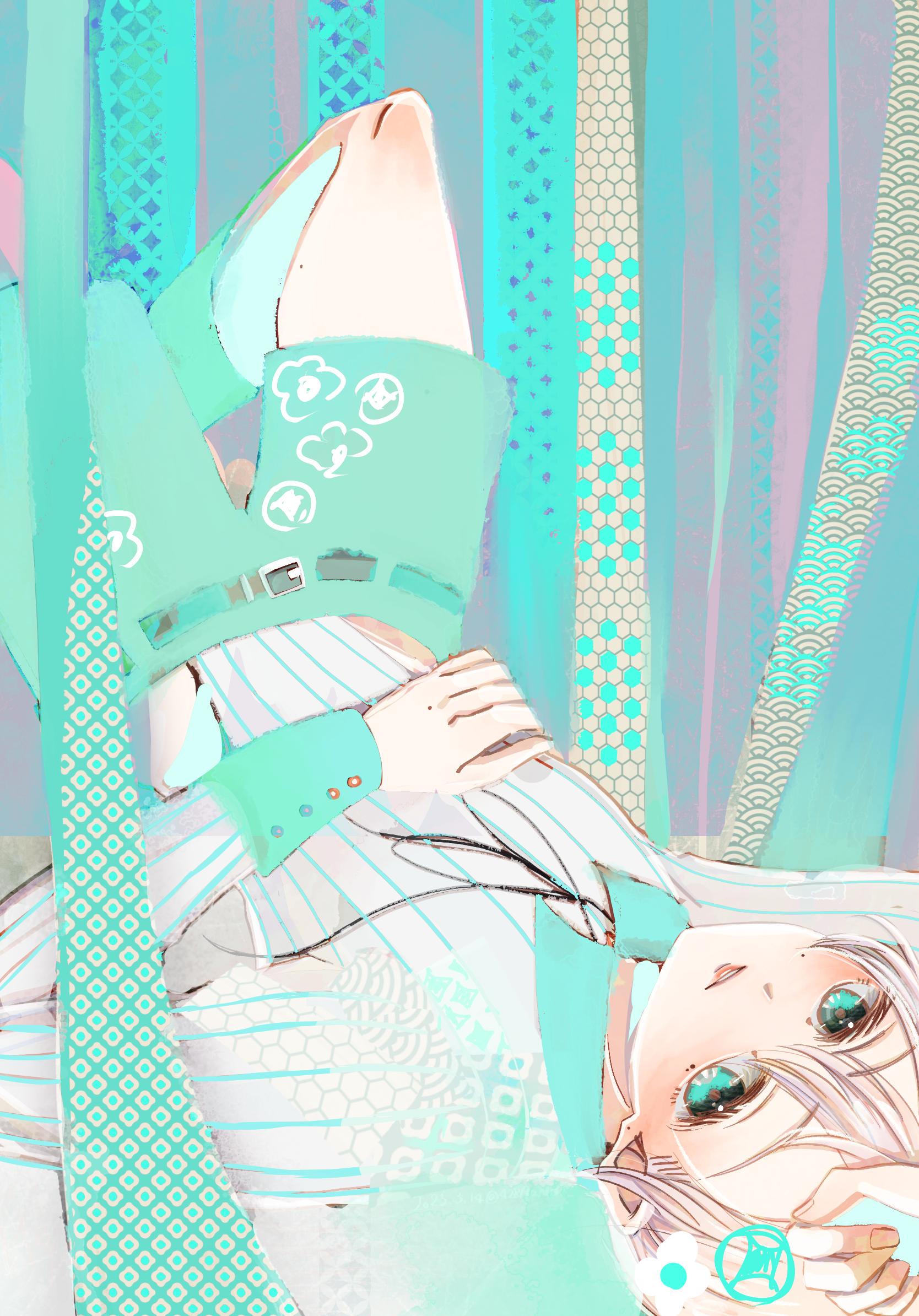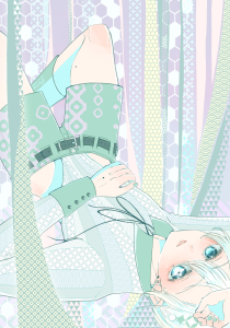 そしてわたしがリペイントするにあたり、先生の絵を再度じっくり見ていた時に「亀甲紋のこの塗りつぶした感じ……なんかサイバー空間っぽい」と気が付いて、背景に取り入れた形になります