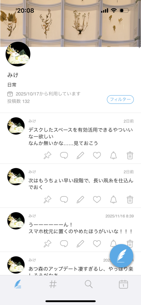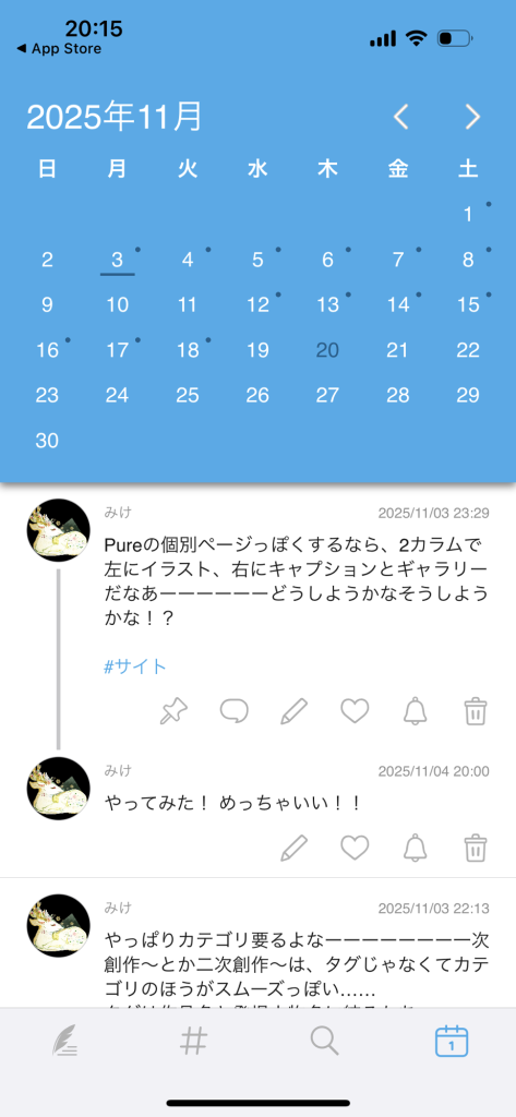 そこでXと距離を置くに当たって、些細なつぶやきを気軽に投稿でき、カレンダーで後から見返すことが出来るメモアプリを探す必要性が有りました
