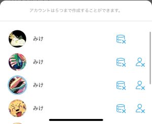 ああそうそう、あとはですね、このアプリでは複垢使いができます!!