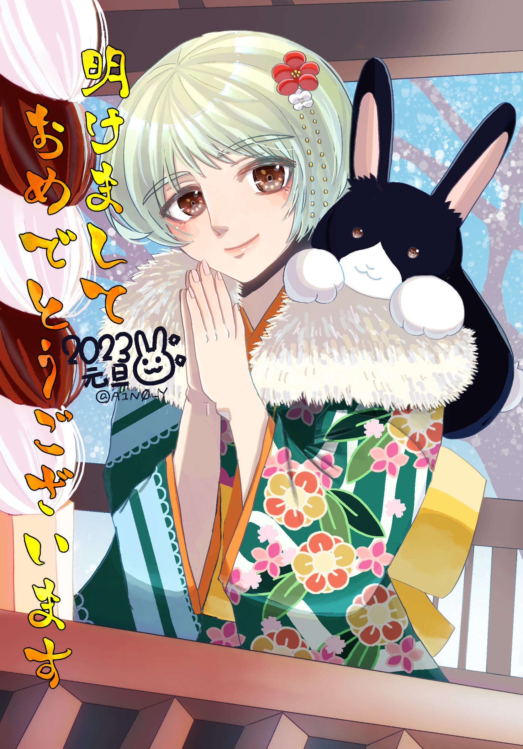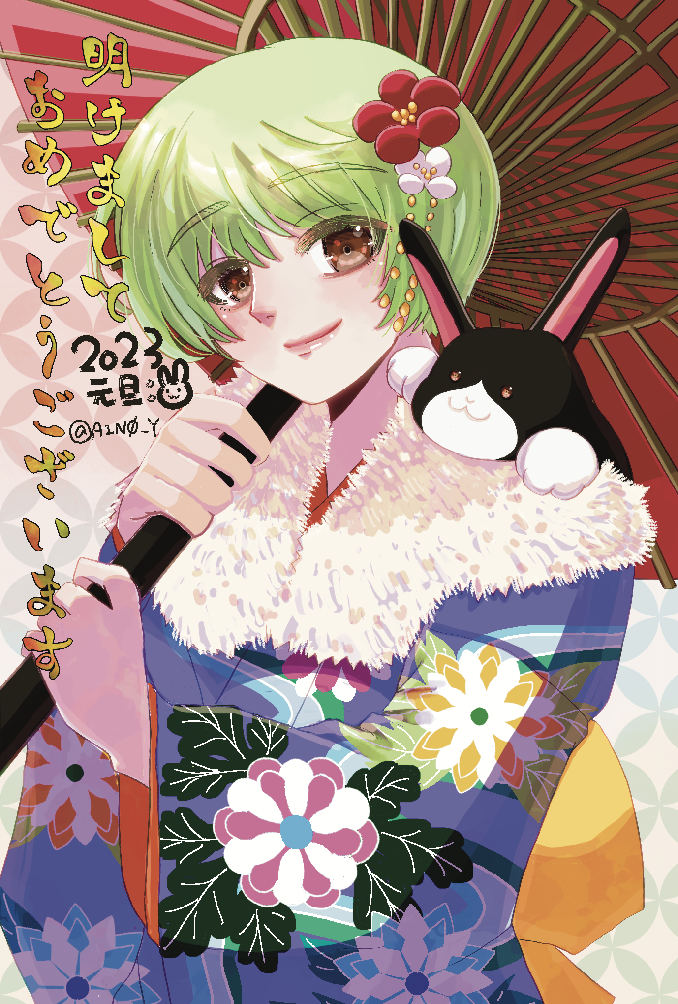2023年の年賀状振袖描きたい!! という一心で女の子キャラに決定こちらは親しいお友達にお送りした絵柄TLに公開したものと着物の柄を変えてみました