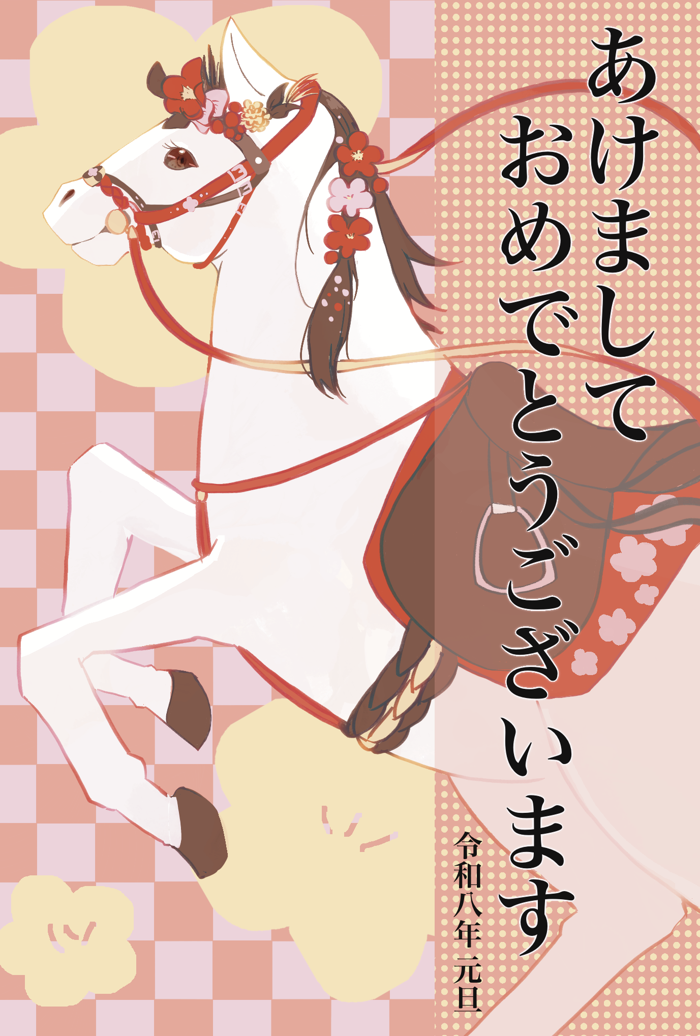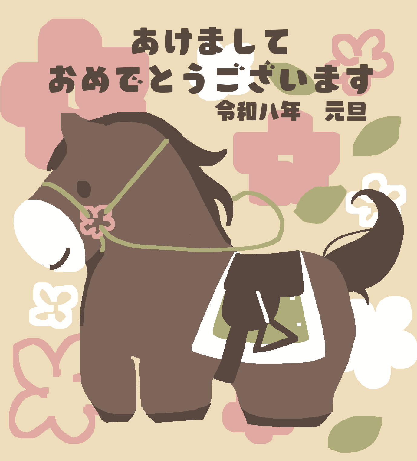 リアルの知り合い向け兼、母用の年賀状ギリギリまで頭絡の形を間違えて描いていることに気付かず、必死に修正しました