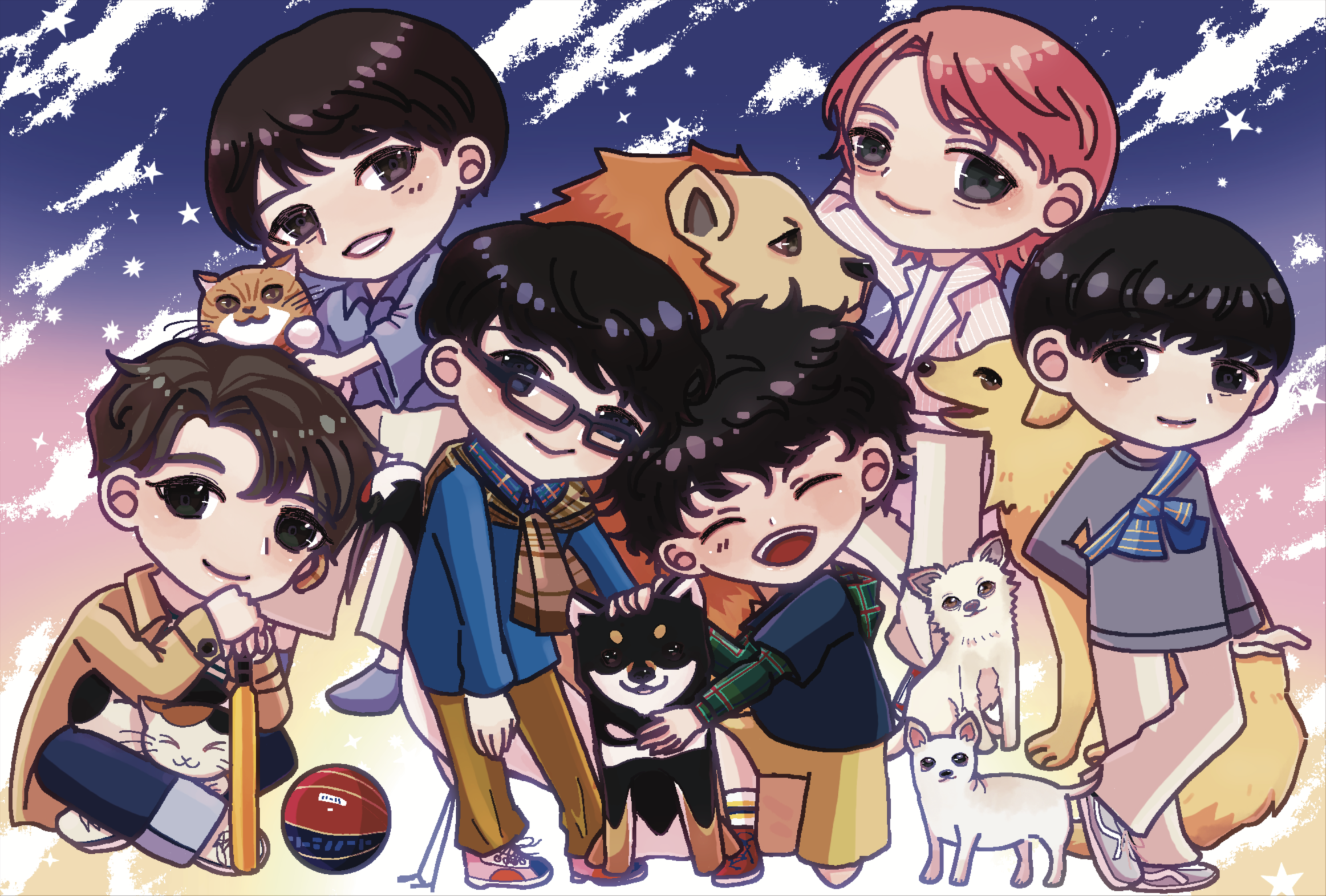 ピンクの朝焼け cosmic!!が解散しちゃうと聞いて、居てもたってもいられずグルショに申し込み、そこでメンバーにお見せした絵 2023-03-25Illust◆推し活,【DD】,#動物・#幻獣,@ちびキャラ