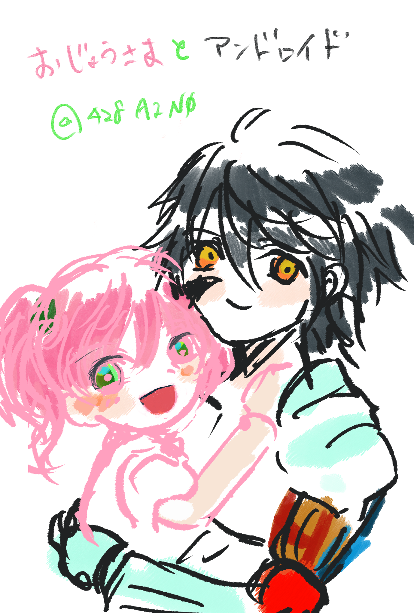 アンドロイドとお嬢様 ZANと幼少期のレナ Procreateを使い始めてちょうど100枚目の記念で描きました 同じような構図で他にも描いているので、 一緒に載せておきます 画像をクリック/タップで高画質版が表示されます Clap