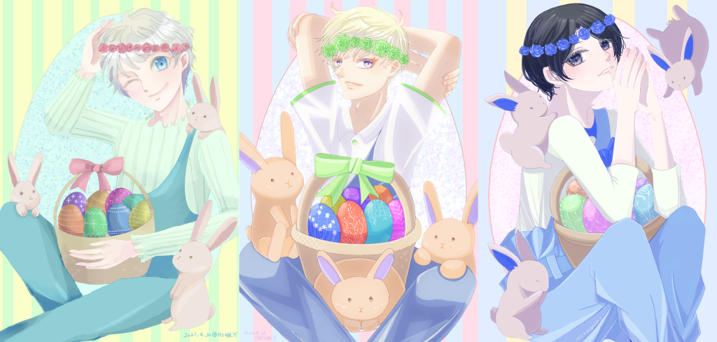 イースターリヒト - 1/4 創作アイドル『リヒト』イースターの様相 CD買うとついてくるブロマイドのイメージで、2021-2023年の間に一人ずつ描きました 画像をクリック/タップで高画質版が表示されます Clap 1 2 3 4