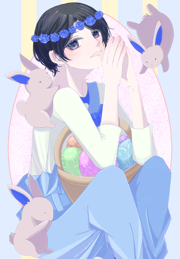 イースターリヒト - 4/4 陽介(2023.4.30) 暁夫、輝也と来たら、描くしかないでしょう! と、意気込んだは良いものの、パステルカラーの中で黒髪が浮かないようにするのにどうしようか、すごく苦労しました うさぎの表情というか、仕草が、三枚描いた中では一番好きです 画像をクリック/タップで高画質版が表示されます Clap 1 2 3 4