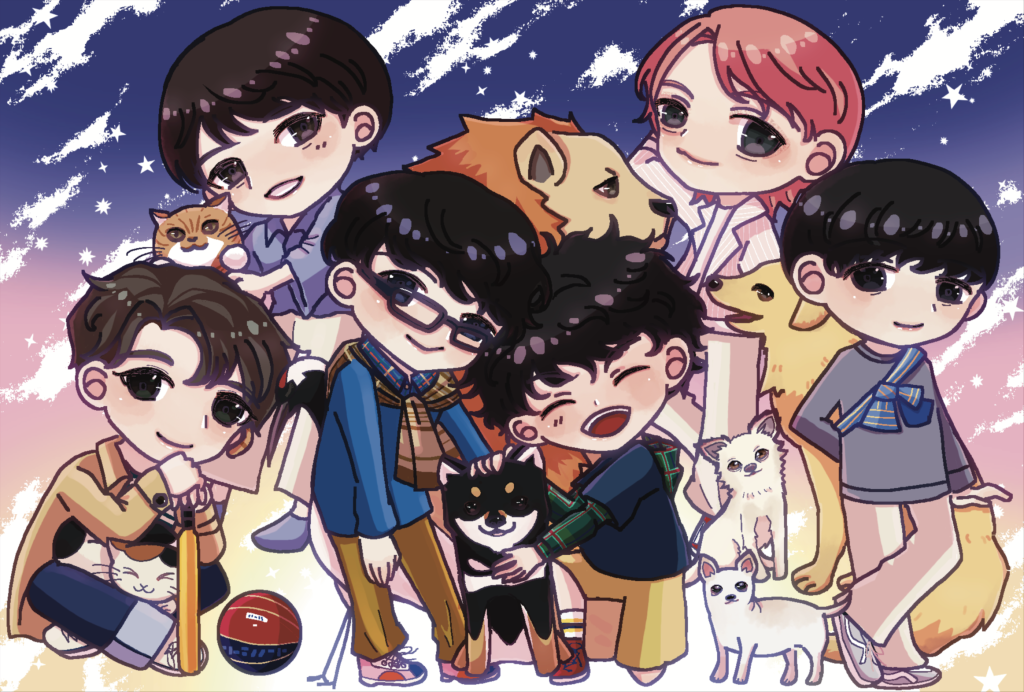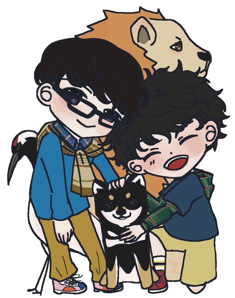 50の質問で「自分を動物に例えると?」でそれぞれ回答されていた動物と、みなさんのご家族ちゃんを一緒に描きました