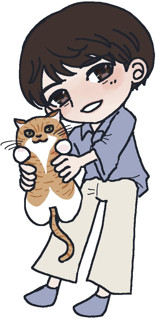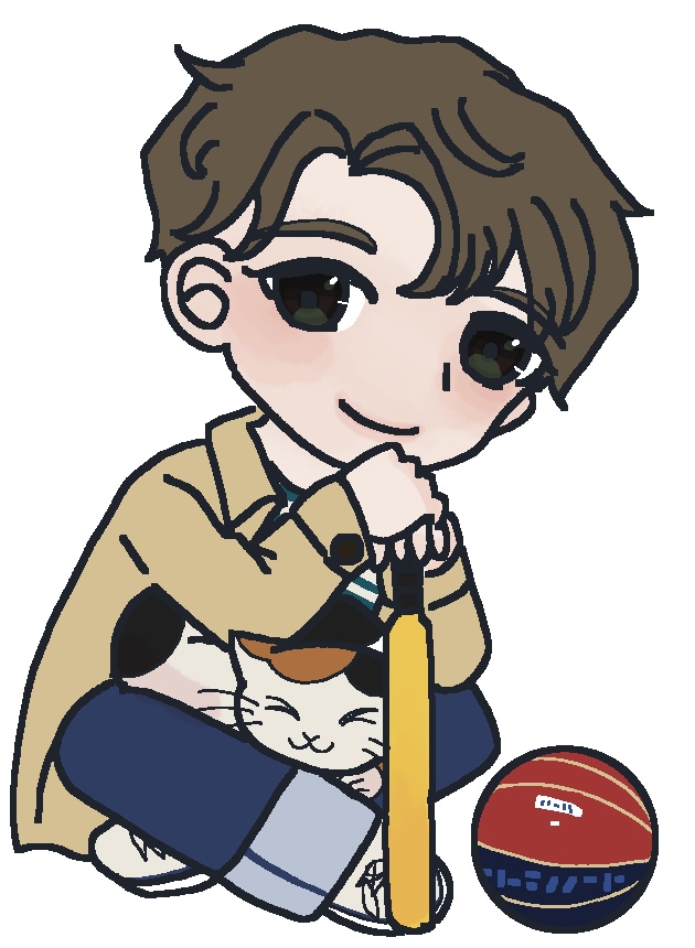ファインさんは活動休止中だったので私服姿を描き、ランドマークの歌詞にある「ピンクの朝焼け」を背景にしました